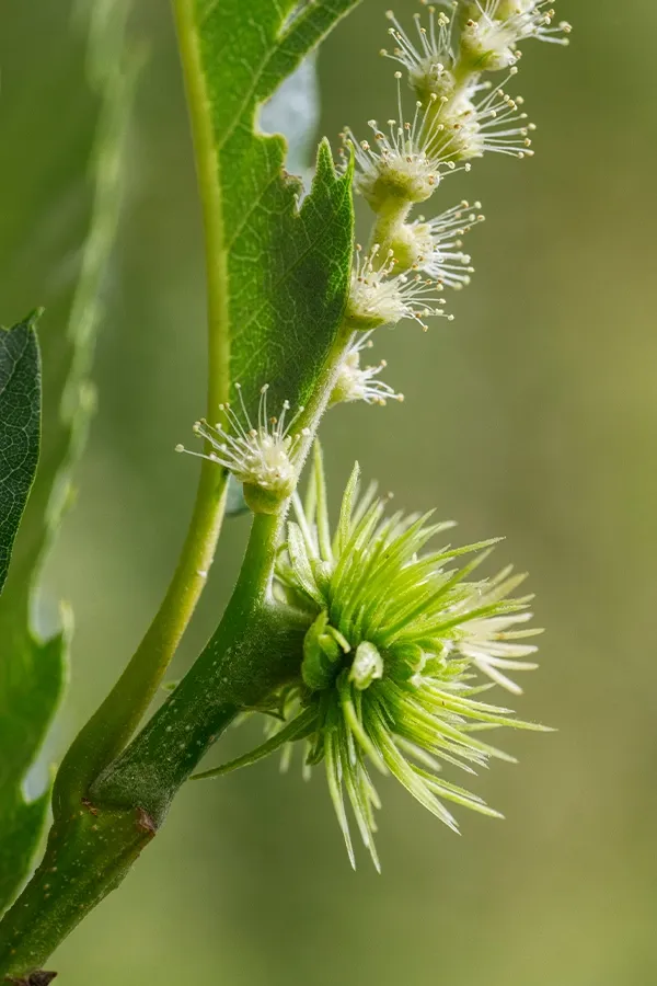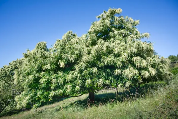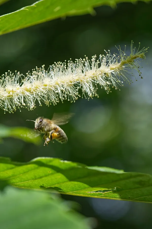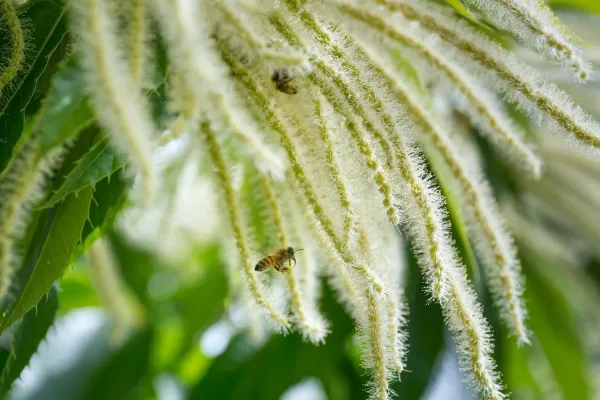 Sous forme de chatons d’une blancheur éclatante, les fleurs recouvrent peu à peu le châtaignier.