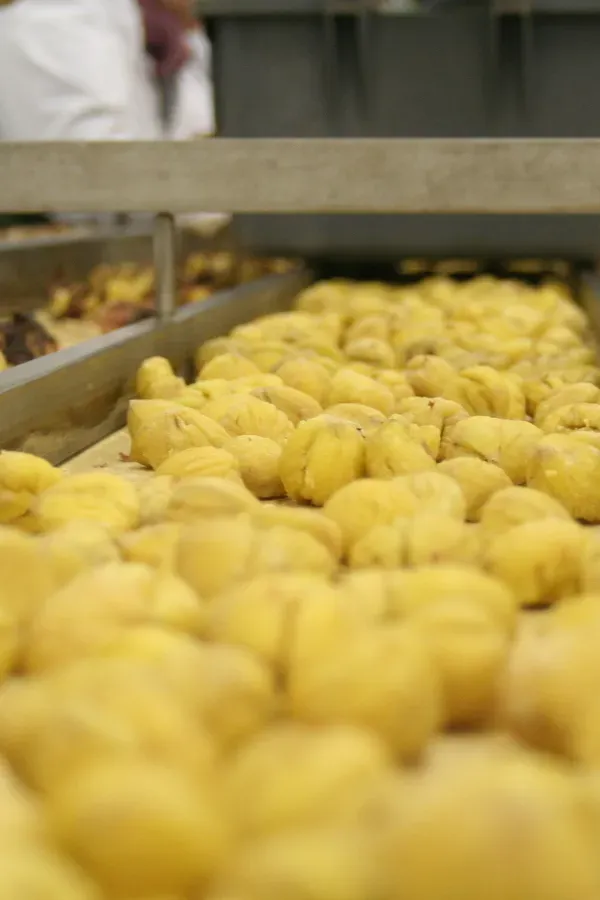 Chaque jour, une équipe passionnée et fidèle œuvre pour produire l’excellence des Marrons IMBERT. De l’épluchage à l’emballage, chaque étape est réalisée avec soin, respectant le processus d’élaboration transmis depuis 4 générations.