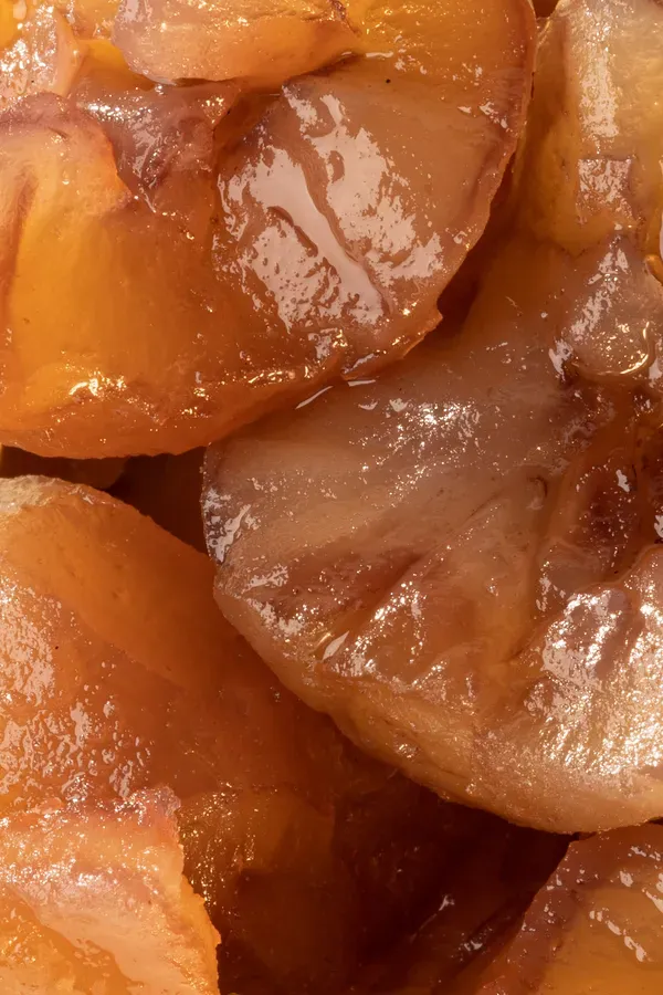 Ferme mais fondante, avec un équilibre délicat entre fruit et sirop.